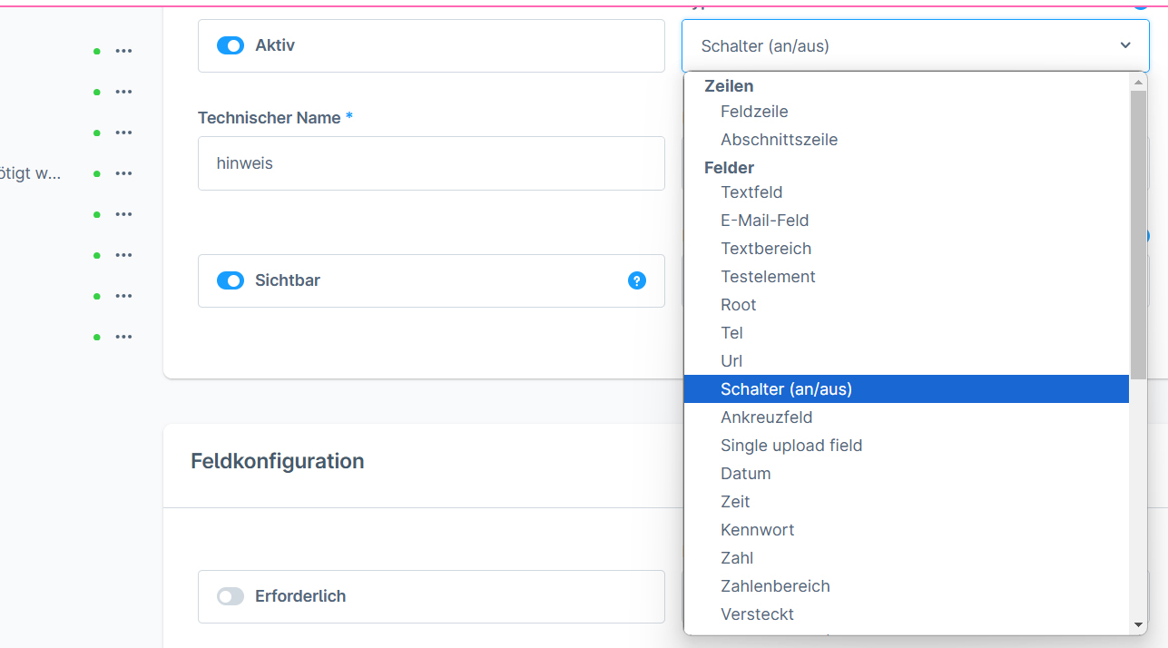 Alle Elemente aus der Gruppe „Feld“ und „Multi-Feld“ können durch zusätzliche Eigenschaften in dieser Konfiguration individuell angepasst werden. Diese erweiterten Einstellungen ermöglichen eine gezielte Steuerung der Funktionalität und des Designs, sodass die Felder optimal an die jeweiligen Anforderungen angepasst werden können.
