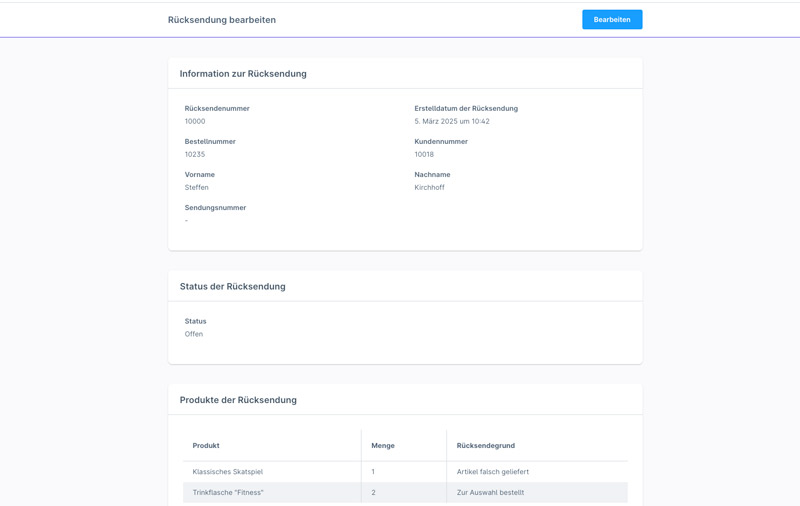 Alle Retouren können Sie im Shopware-Admin einsehen und verwalten.